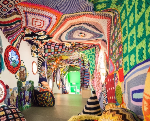 Put a creative twist on your fabric, textile, crocheted, knitted, felted, and hooked-arts practice in this workshop led by artist Jeila Gueramian. Inspired by her installation, Let's Step Inside, participants will create whimsical artworks using found textiles, fiber, and fabric. Bring your favorite textiles or fiber materials to incorporate into your project.