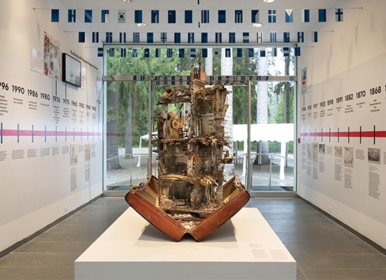 The exhibition is organized around a series of "arrival moments" —Columbus, the Middle Passage, the Mayflower, Ellis Island / Angel Island, WW2, 1965, and Today—in order to explore some of the myths and origin stories that have shaped American identity. ARRIVALS asks how artists over several centuries have helped to construct these stories, disrupt or challenge them, how they have navigated their own arrival stories, and how they are imagining new kinds of stories to tell in future.
